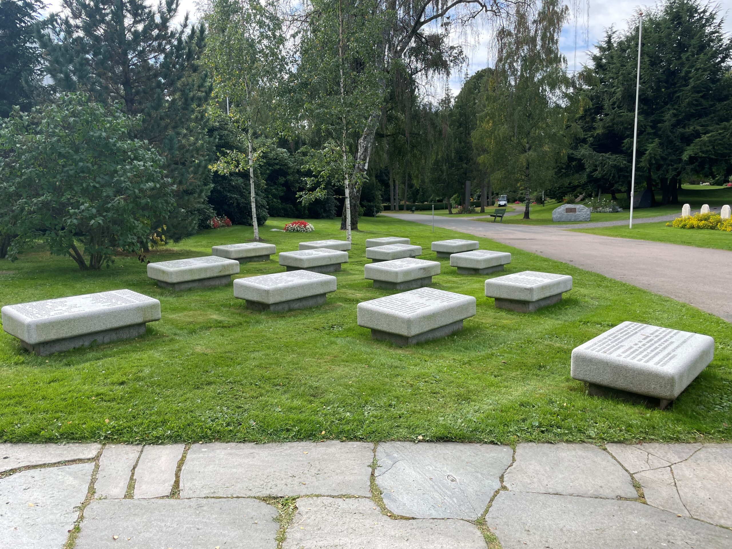 Minnesmerke med navn på falne russiske soldater under andre verdenskrig. Monumentene er produsert i Iddefjords Granitt. Overflatene er håndprikket, og navn er sandblåst med opphevet skrift. Prosjektet er utført for Oslo Kommune på Vestre Gravlund.