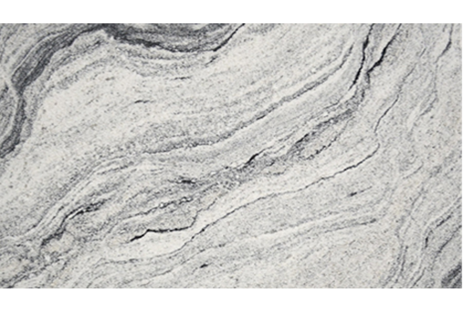 En lys stein med grå og sorte årer fra India. Leveres i 30 mm tykkelse med polert overflate.