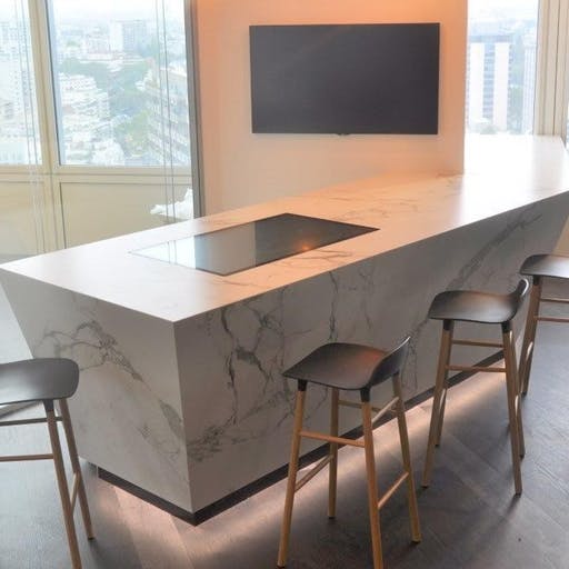 Auras personlighet snakker for seg selv og hedrer Calacatta- og Carrara-marmor. På den hvite bakgrunnen trekkes årer som fremkaller linjene i disse naturlige steinene.