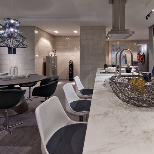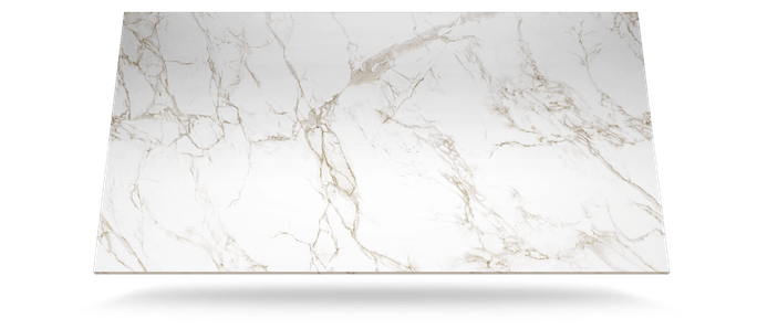 Inspirert av marmoren Calacatta Gold. Realisme og naturlighet er pustet inn mellom tilfeldige former som trekker gylne årer.