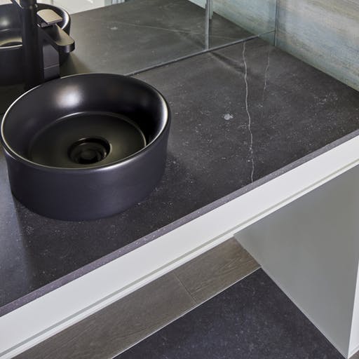 Det er ingenting så naturlig som årene og flekkene som er trukket på dette materialet mot en formørket, grå bakgrunn. De gir den et gammelt utseende typisk for herdede stykker.