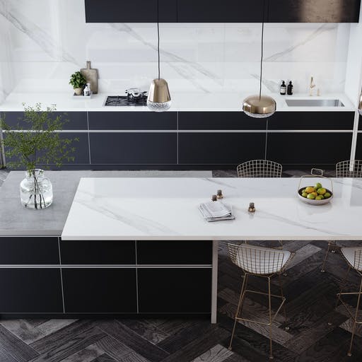 Med inspirasjon fra høykvalitets Carrara-marmor, er Dekton®Stonika Olimpo-serien ypperlig til de mest kresne. Elegante, gråaktige årer på en hvit bakgrunn som uthever detaljene i en blendende glans.