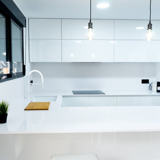 Kvarts materiale (Silestone) som leveres med polert overflate i 20mm tykkelse.
